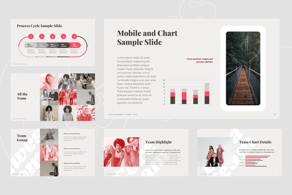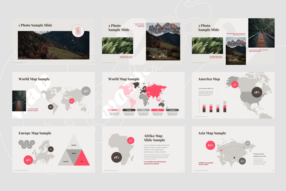 This Presentation template has a fashionable modern classy style with muted colors and a red accent with dynamic layouts, an editorial, and a clean style. With a total of 68 slides, this is a perfect deck for start-up fashion, editorial, beauty companies, unique pitch decks, or any creative and lively presentation. It includes several layouts that will help you communicate your ideas with a strong design. Easy to use, it has many image placeholders, layout examples, and exclusive template shapes that you can place anywhere in the slides. Also included 8 animated slides samples.